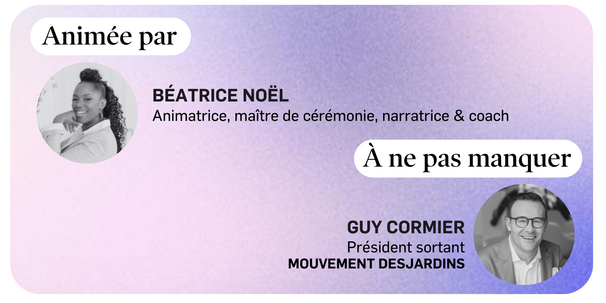 Dans un monde en pleine transformation, comment demeurer fidèle à ses valeurs tout en assumant pleinement son rôle de leader? Ce panel réunit des personnalités inspirantes aux parcours variés pour explorer les multiples visages du leadership conscient et aligné. Ensemble, elles partageront leur vision d’un leadership ancré dans l’éthique, la cohérence et l’impact, et échangeront sur les défis et les leviers permettant d’incarner un leadership authentique, capable de mobiliser, d’influencer positivement et de transformer les organisations et la société.