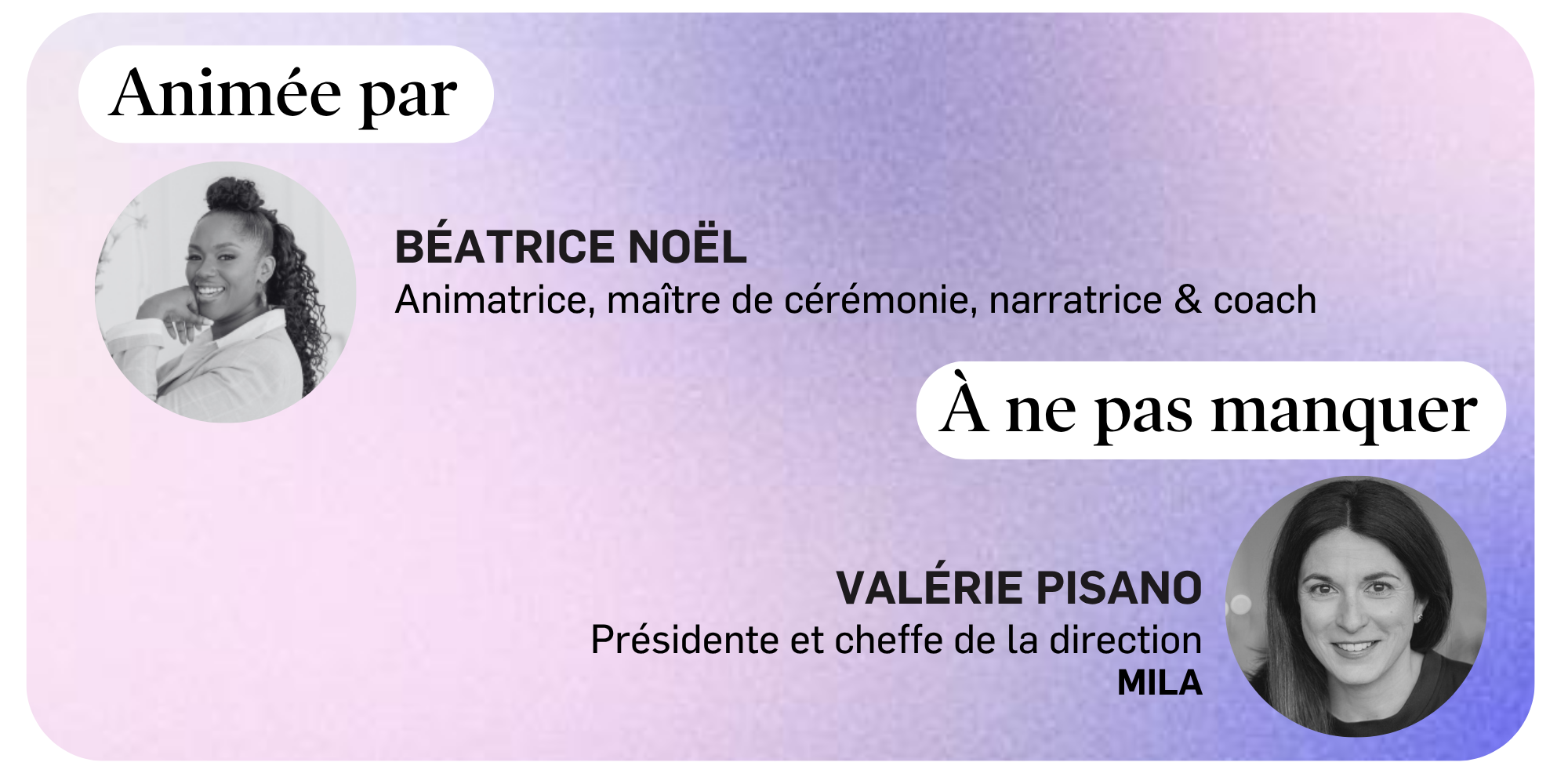 Dans un monde en pleine transformation, comment demeurer fidèle à ses valeurs tout en assumant pleinement son rôle de leader? Ce panel réunit des personnalités inspirantes aux parcours variés pour explorer les multiples visages du leadership conscient et aligné. Ensemble, elles partageront leur vision d’un leadership ancré dans l’éthique, la cohérence et l’impact, et échangeront sur les défis et les leviers permettant d’incarner un leadership authentique, capable de mobiliser, d’influencer positivement et de transformer les organisations et la société.